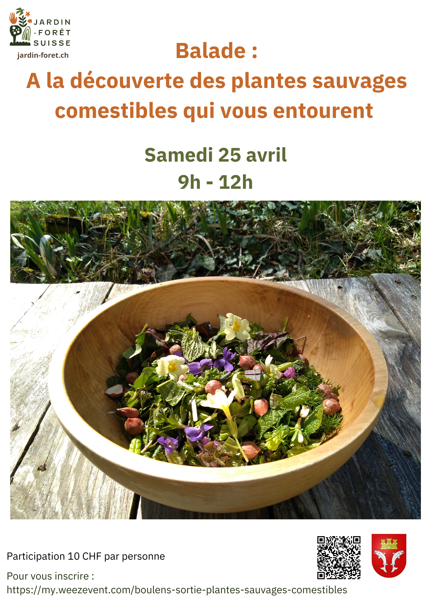 Notre région regorge de plantes sauvages comestibles et nutritives ! Inspirée des initiatives suisses, notamment celles de Jardin-Forêt Suisse, ainsi que des pratiques des cueilleurs sauvages romands, cette balade propose une approche concrète et accessible de la cueillette sauvage.